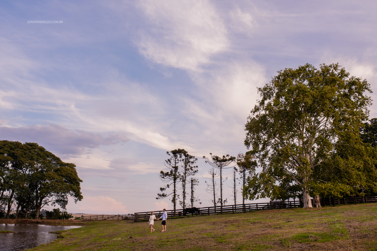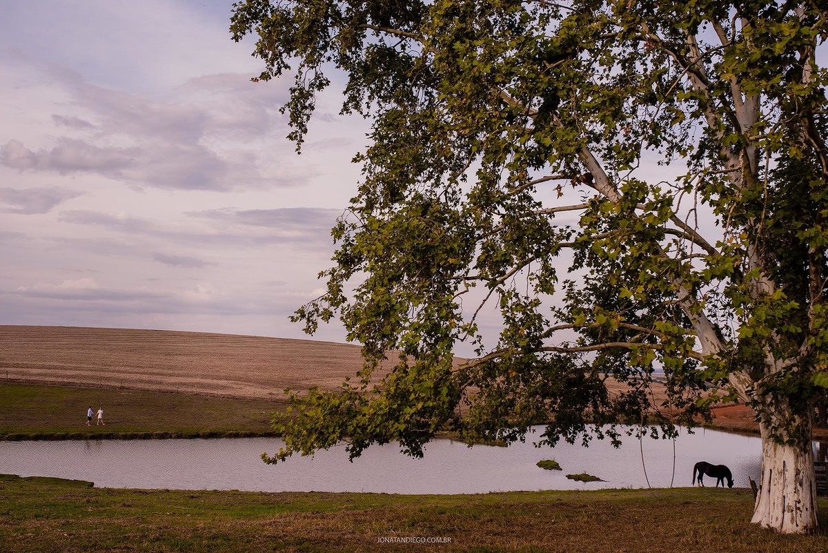 Eu sempre acreditei na fotografia que trás sentimento, a Dani e o Marcelo escolheram um lugar perfeito para seu pré casamento (O lugar aonde eles vivem) o local aonde o Marcelo se criou e o lugar que certamente seus filhos irão passar muito tempo... grandes histórias ali naquele cenário foram contadas e sentidas... isso é muito legal pois trouxe mais força para este momento... foi numa tarde de domingo logo após a colheita que tive o previlégio de conhecer esta família... ao terminar o ensaio a Dani ja estava mega curiosa e eu como sou ruim não mostrei muita foto rsrsrsrs... sentamos numa roda de mate, ali também estavam os pais do Marcelo, não fiquei muito tempo pois estava podre de poeira e ja era noite, mas o pouco que fiquei pude sentir aquele menininho que a mãe falava brincando ali fora na frente do galpão, o mesmo galpão que hoje aparecia como um fundo nas suas fotos de pré casamento... e quem sabe um dia seus filhos netos bisnetos vão ver estas fotos e dizer pai mãe aqui tinha um galpão? aqui tinha um açude? aqui tinha uma casinha amarela?. Tudo um dia pode mudar o que não mudamos é a história e que bom que vocês Dani e Marcelo tem esta história registrada na forma mais verdadeira e linda de ser A FOTOGRAFIA...
