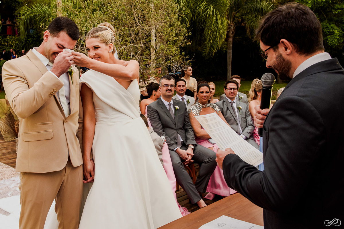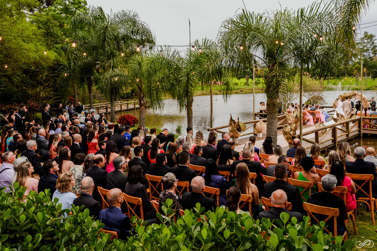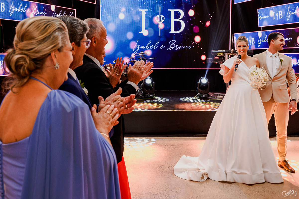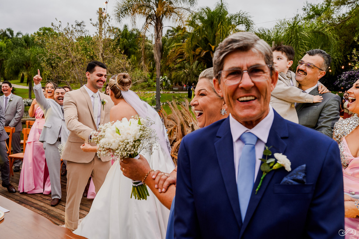 Que linda celebração! O casamento do Bruno e da Izabel foi um dia verdadeiramente especial. O clima, mesmo ameaçando chuva, permaneceu ameno. A noiva estava radiante e o noivo, emocionado. A surpresa da chegada da Catarina durante a cerimônia foi um momento tocante.